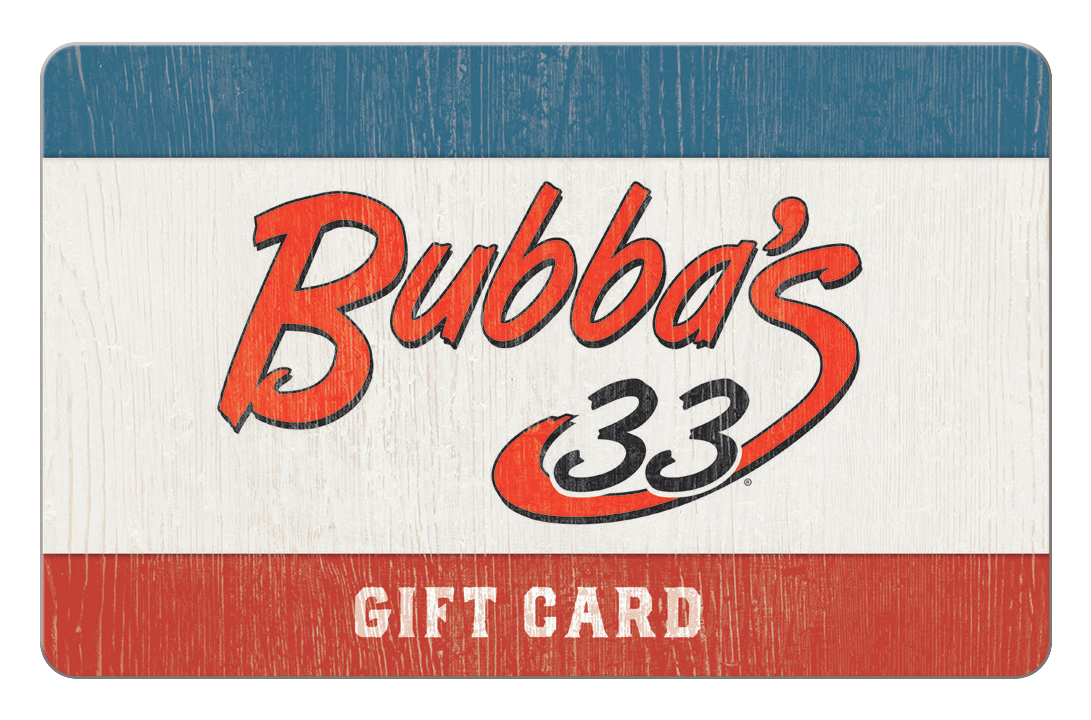 Redeemable only at U.S. Texas Roadhouse and Bubba’s 33 restaurants. No fees. No expiration date. Not a credit or debit card. Remaining value of damaged, lost, or stolen cards only replaced with proof of purchase. Not redeemable for cash, except as required by law. For balance inquiries, complete terms or questions, visit www.bubbas33.com. Armadillo, Inc. or its successor or designee is the card issuer and sole obligor to the card holder. Another party may be substituted as the card issuer and sole obligor without card holder’s consent. Purchase, use, or acceptance of card constitutes acceptance of these terms.