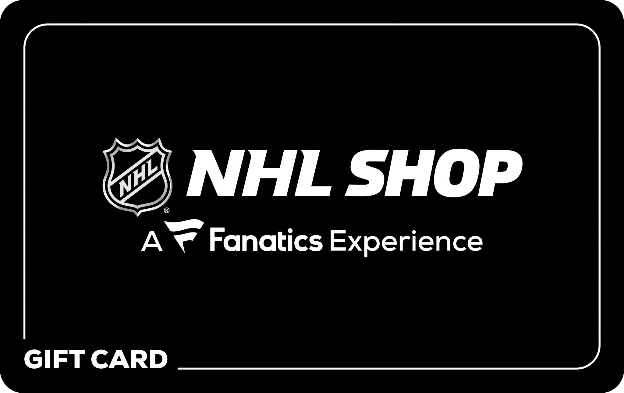Valid at Shop.NHL.com and the NHL Flagship Store on 6th Avenue – NYC. Except where required by law, cannot be redeemed for cash or cash equivalent, returned, reproduced, modified, sold, traded, refunded or replaced if lost or stolen. Not valid on previous purchases or returns. No cash back unless required by law. Any unused amount will be applied when you re-enter your gift card during your next purchase. All purchases are subject to the Shop.NHL.com Terms of Use, which may change at any time. To check your gift card balance, please visit Shop.NHL.com/gc. Void where prohibited. Gift cards are issued by Fanatics Retail Group Fulfillment, LLC.